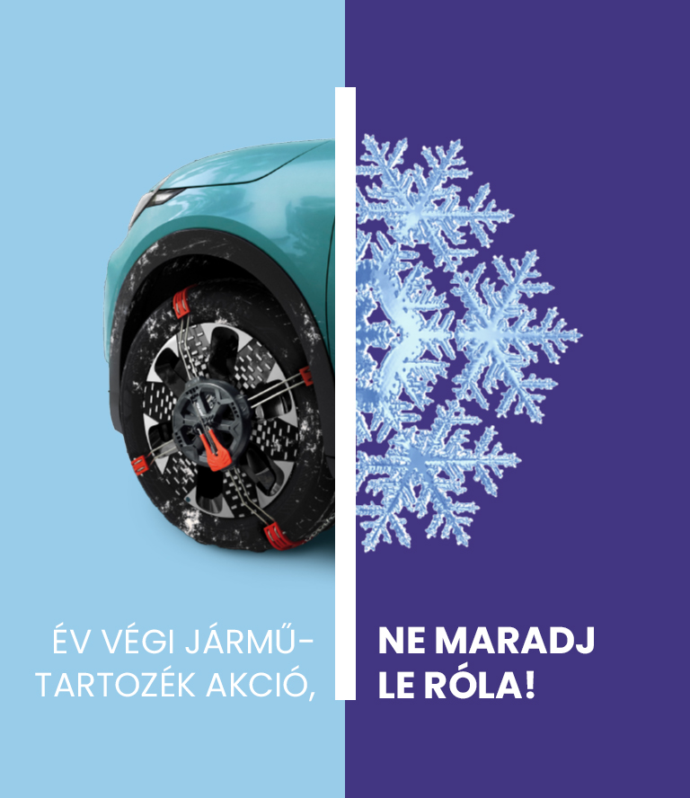 *Az ajánlatok 2025. november 04-től 2025. december 19-ig érvényesek az akcióban résztvevő hivatalos Fiat márkaszervizben. A kedvezmény az F Automobil Import Kft. által forgalmazott gyári utastéri- és csomagtéri szőnyegekre, gyári csomagtértálcákra, gyári hóláncokra és hózoknikra, valamint gyári síléctartókra és gyári tetőrudakra vonatkozik. Az akció más ajánlattal, más kedvezménnyel, hűségprogrammal nem vonhatók össze, visszavonásig és/vagy a készlet erejéig érvényesek.