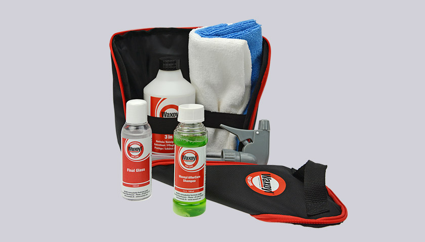 Ápoló-karbantartó szett, mely kiválóan alkalmas a Waxoyl felületvédelemmel kezelt járművek karbantartásához, és a járművek általános minőségi karbantartásához is.