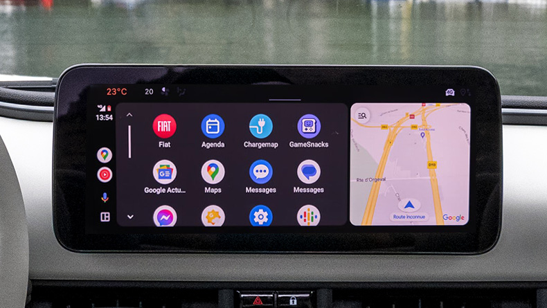 A Fiat 500 Hybrid kompatibilis az Android Auto™ rendszerrel is, és vezeték nélkül csatlakoztatható (kompatibilis telefonokkal). Miután okostelefonod csatlakoztattad az autóhoz, a felhasználóbarát felületen megjelennek az alkalmazások a Uconnect™ 10,25"-os kijelzőjén. Kezelheted zenéid és névjegyzéked, a Google Maps segítségével navigációt kérhetsz, valós idejű forgalmi információkat tekinthetsz meg közvetlenül az érintőképernyőn, mindezt biztonságosan.